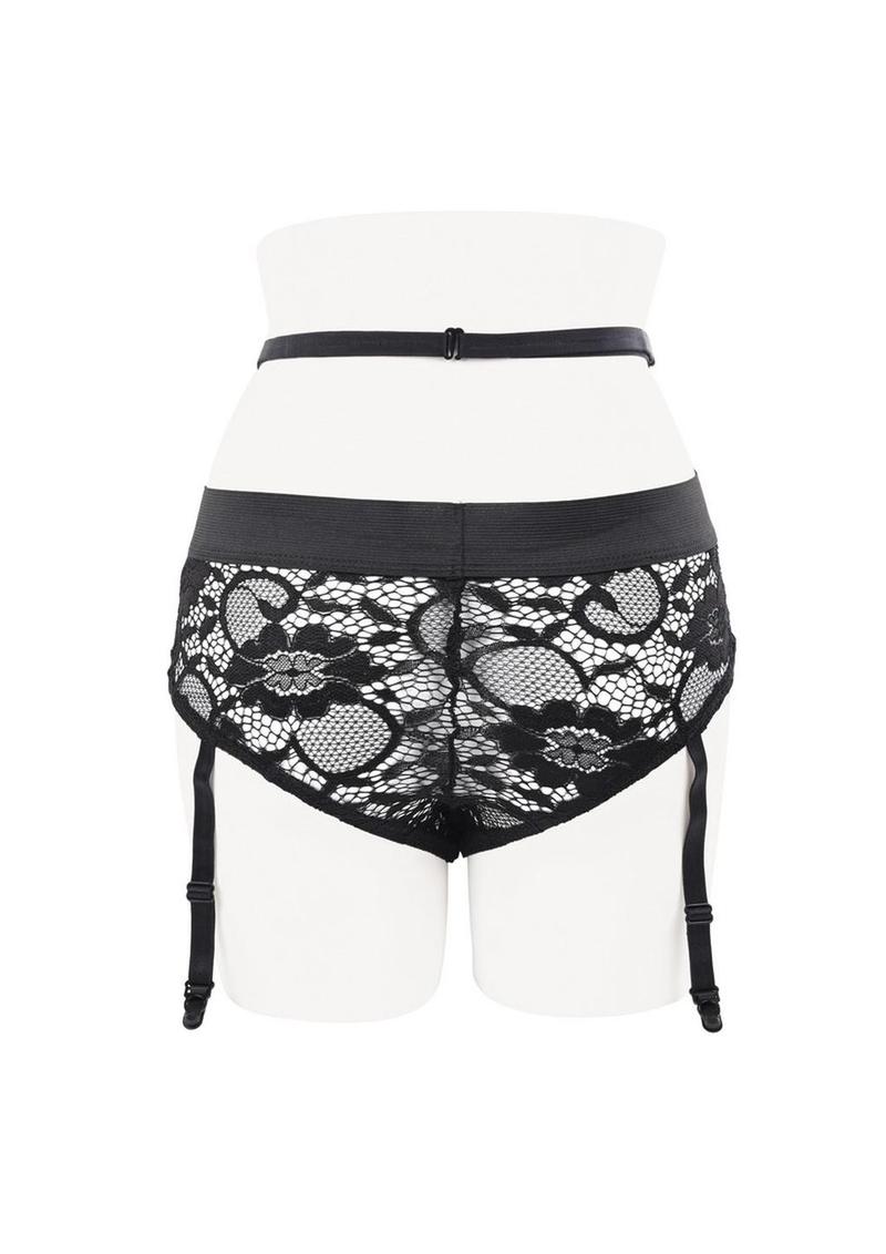 Strap in for dual-motor playtime! This wavy-shaft vibe is large and in charge, putting you in the driver’s seat of a big silicone shaft with delicious textures and two 10-speed motors – one at the tip and one at the base. The vibe slips inside the pocket of comfy lacy booty shorts for a secure fit, allowing you to focus on fun! Use the remote control for hands free or partner play and take your strap-on experience into the bath or shower as this toy is completely water submersible. Rechargeable, easy to clean and latex free!