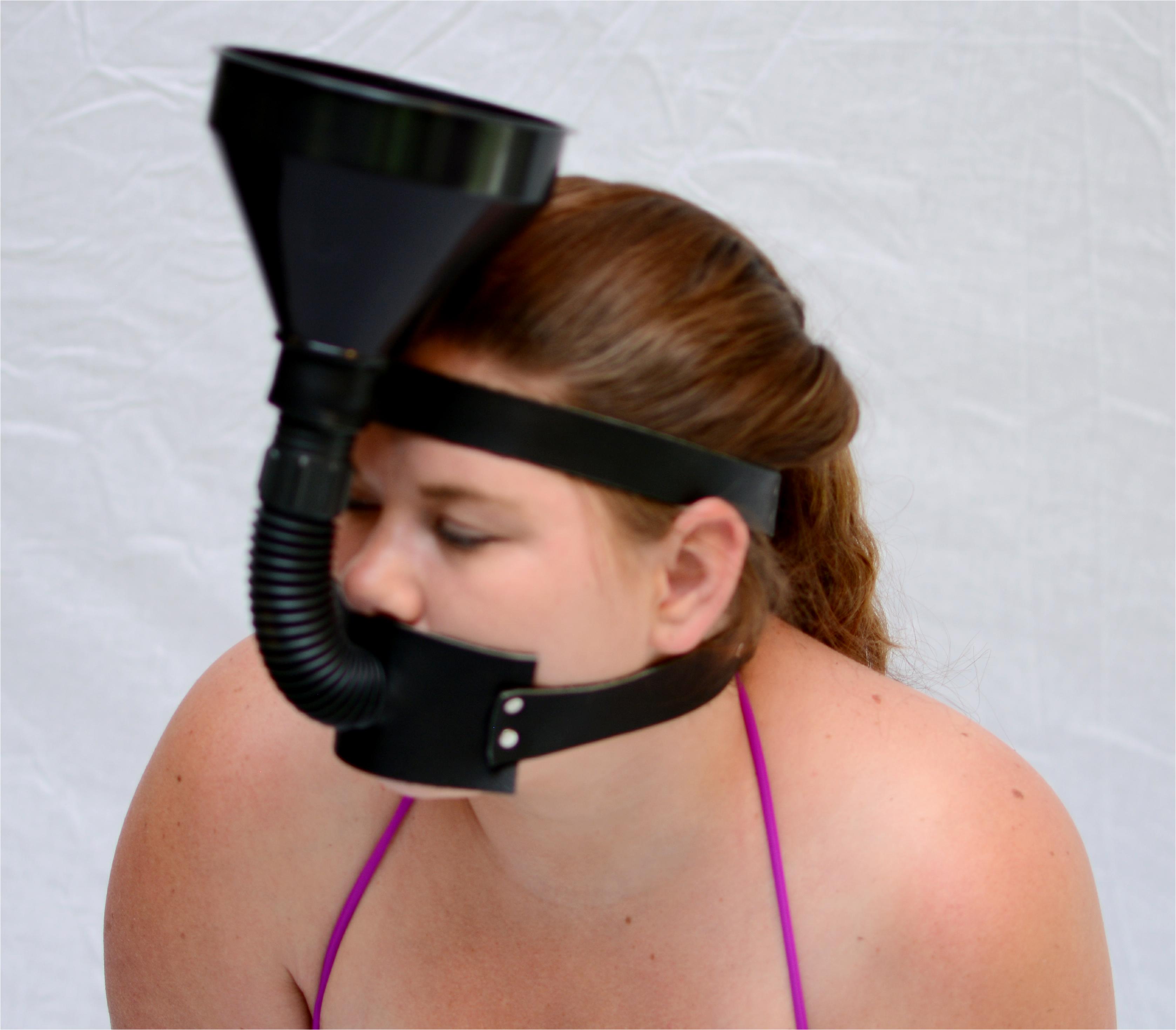 The end of the funnel goes a couple inches into the subs mouth so they can't refuse the fluids that enter.