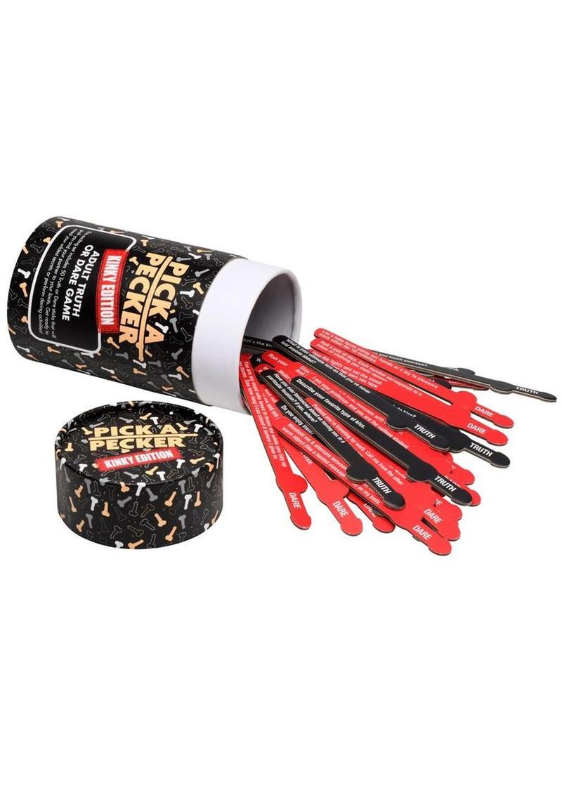 Get the party really started when you bring out this Kinky Truth or Dare Party Game! Everyone can pull one stick at a time and choose between the truth or dare option. Expect questions like, "Have you ever been injured during sex?", "What's your most embarrassing sex story?", or "When's the last time you wore hand cuffs?". Explore dares that bring out the wild and comical such as "Remove an item of clothing from a player without using your hands", "Moan your three favorite foods", or "Act out your favorite sex position with an imaginary partner". If it doesn't get you laid, it is sure to get some laughs! Great for any wild party, it's travel-friendly, compact, and easy to play.